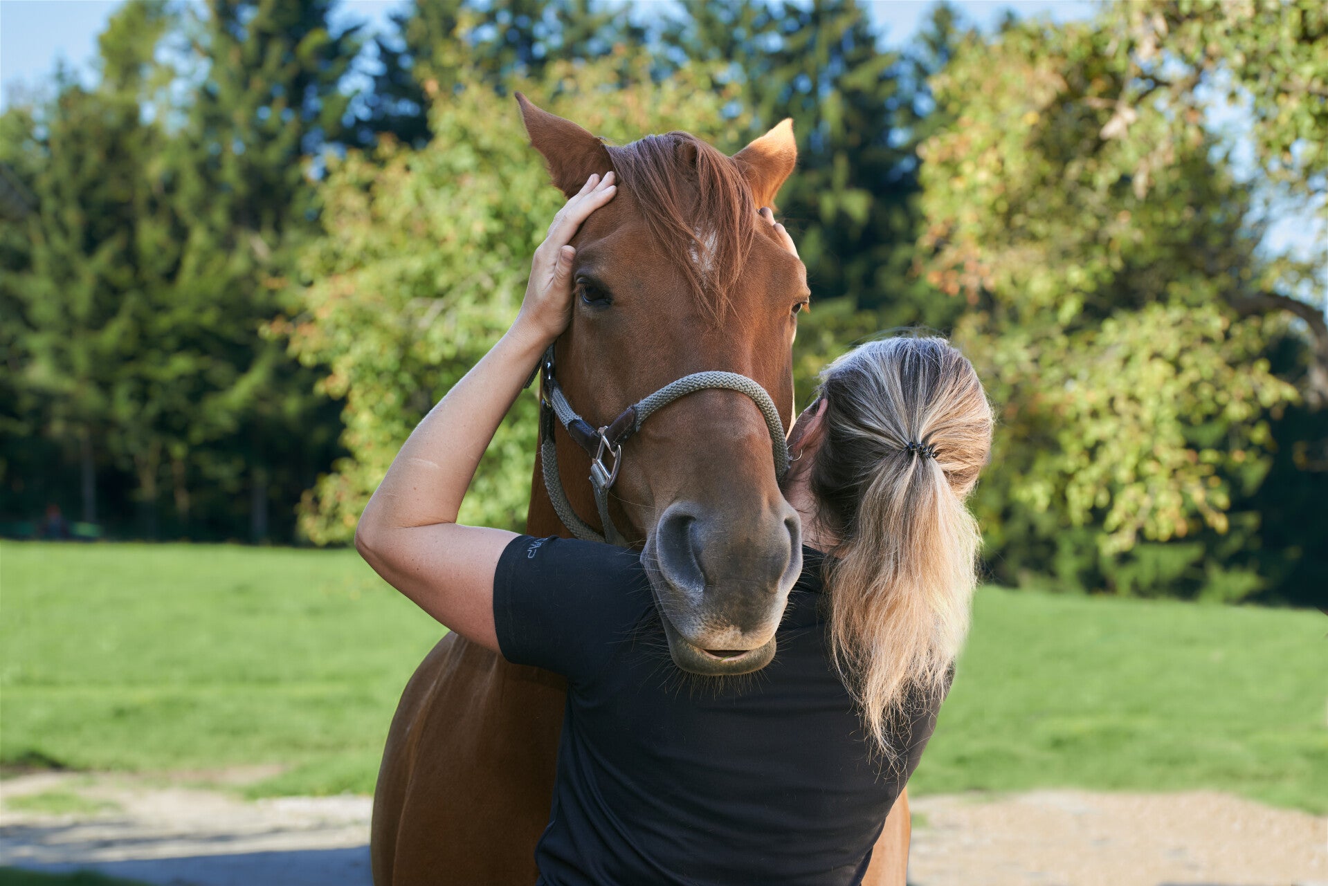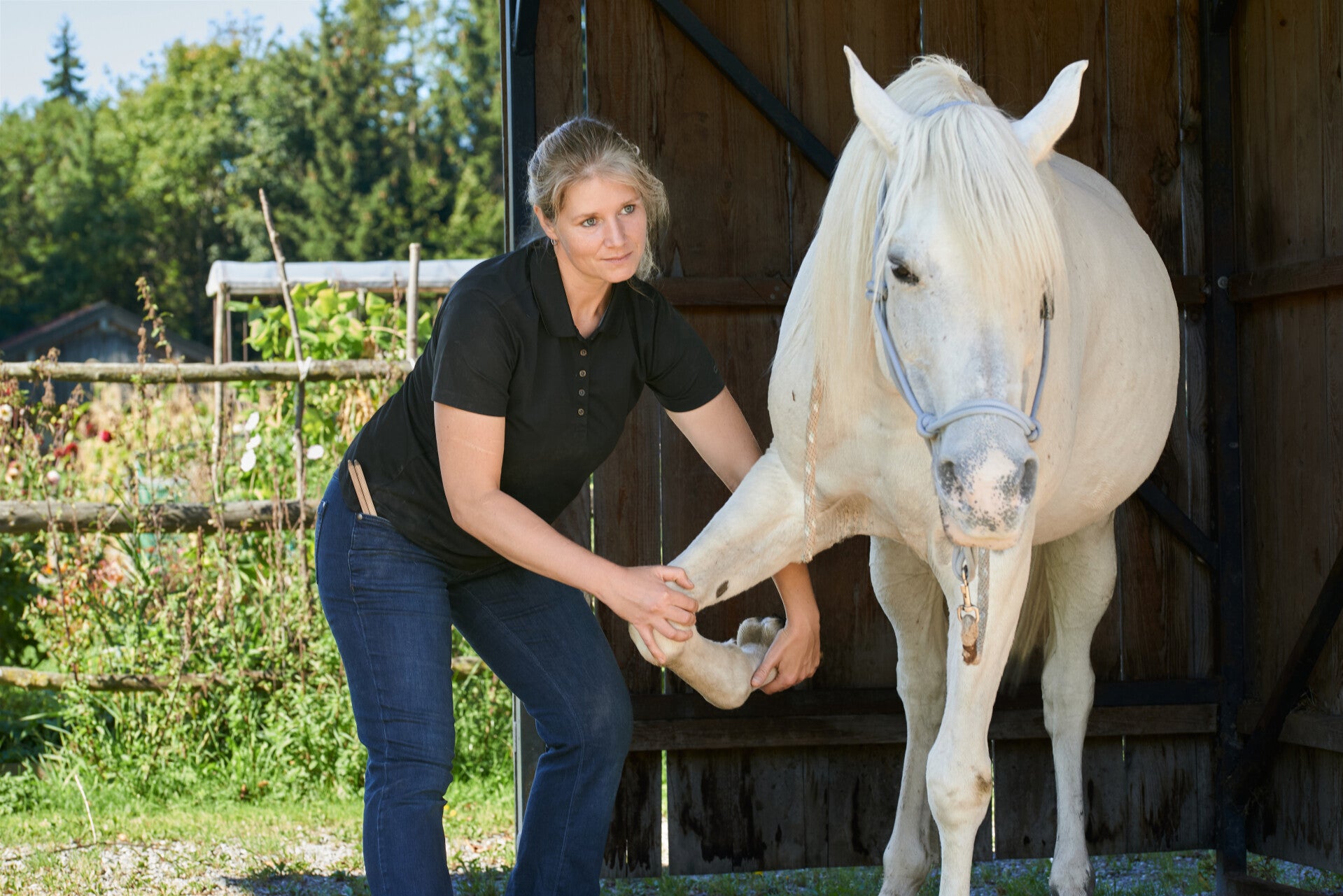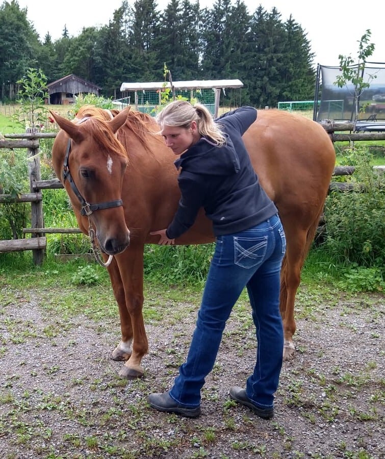 Dehnungs- und Massagetechniken runden die Behandlung ab, die auch als Weiterbehandlung durch den Pferdebesitzer möglich sind.